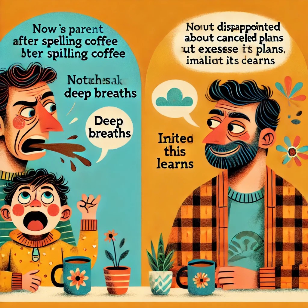 “I’m feeling frustrated because I spilled my coffee, but I’m going to take deep breaths and clean it up.”