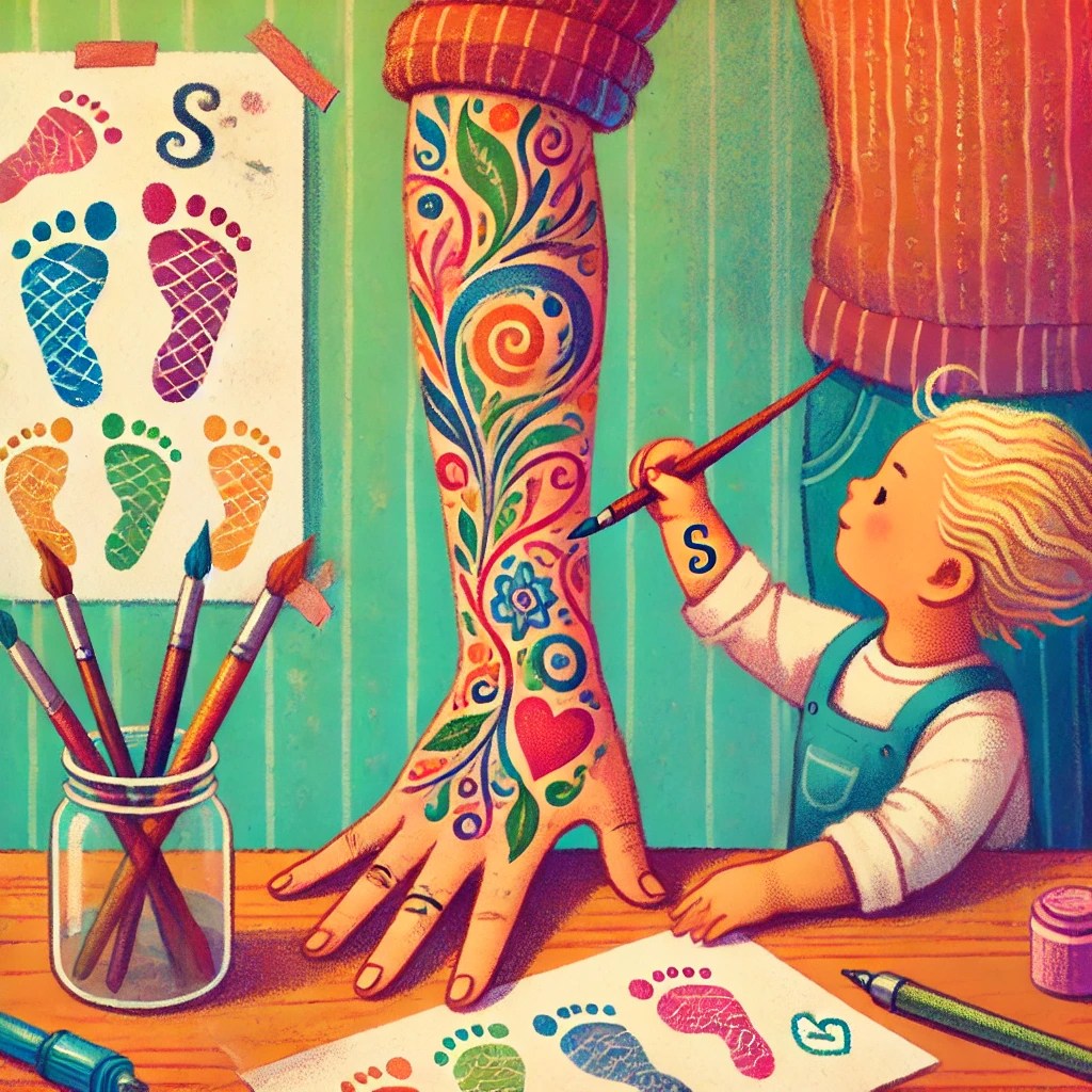 Now, years later, I’m contemplating a second tattoo, one that isn’t just a mark of the past but a tribute to my present — my kids. A symbol of their laughter, chaos, and the endless love that fills my heart. I imagine their names in a playful, swirling font or a trio of tiny footprints walking along my forearm, each representing a little soul that has imprinted my life.