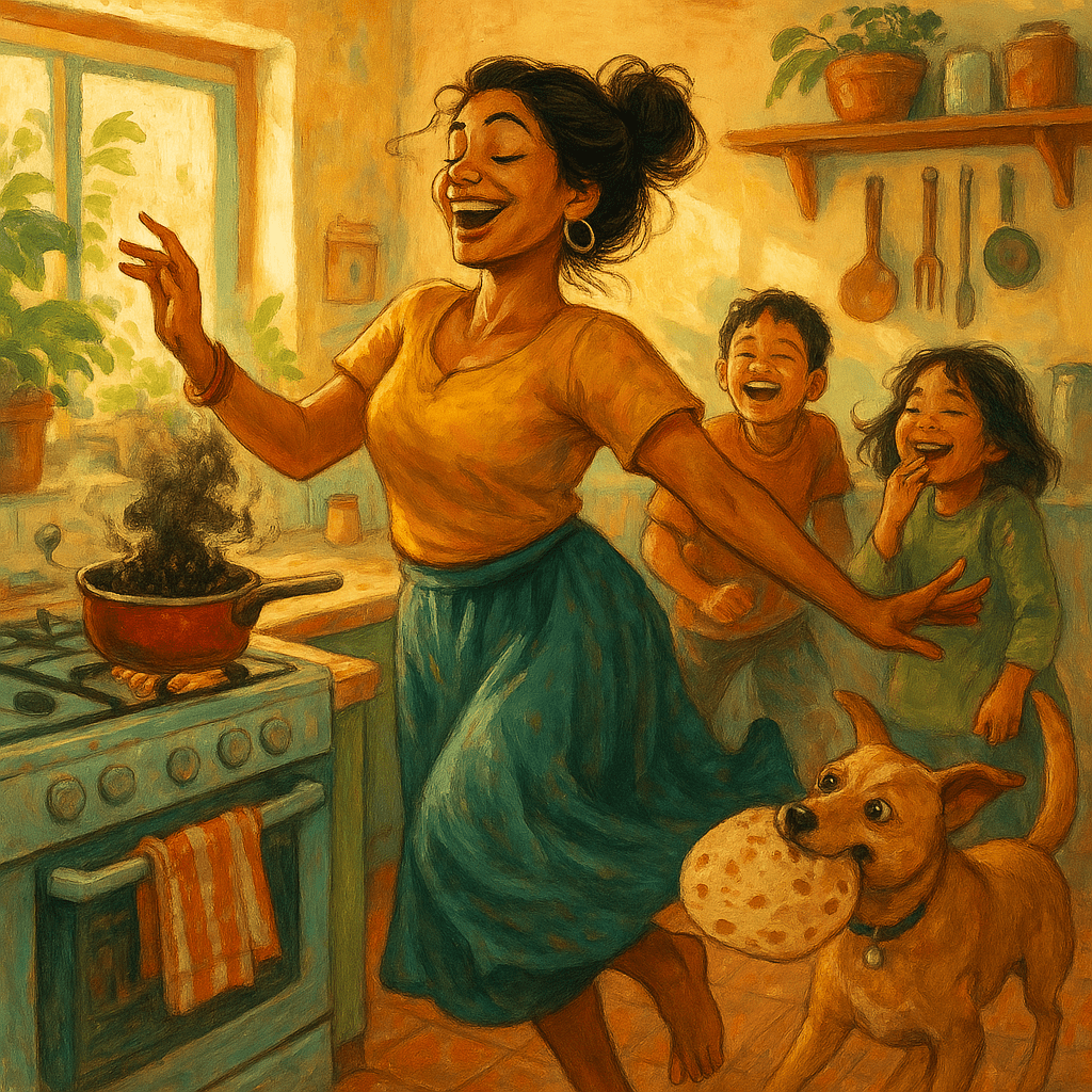 Let my children remember how I once burned rice while dancing to Shah Rukh Khan songs, and instead of crying, I served it with extra ghee and said, “Charcoal is good for digestion.”