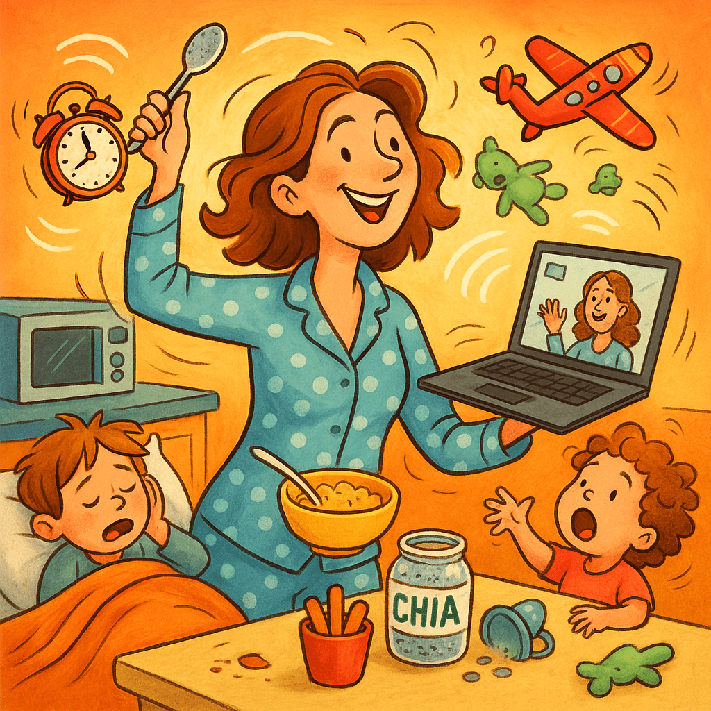 Then begins my “Work From Home” saga — which is really just juggling deadlines while dodging flying toys and snack requests. One moment I’m on a call sounding professional, the next I’m mute, mouthing “Stop jumping on the bed!” to my tiny co-workers.