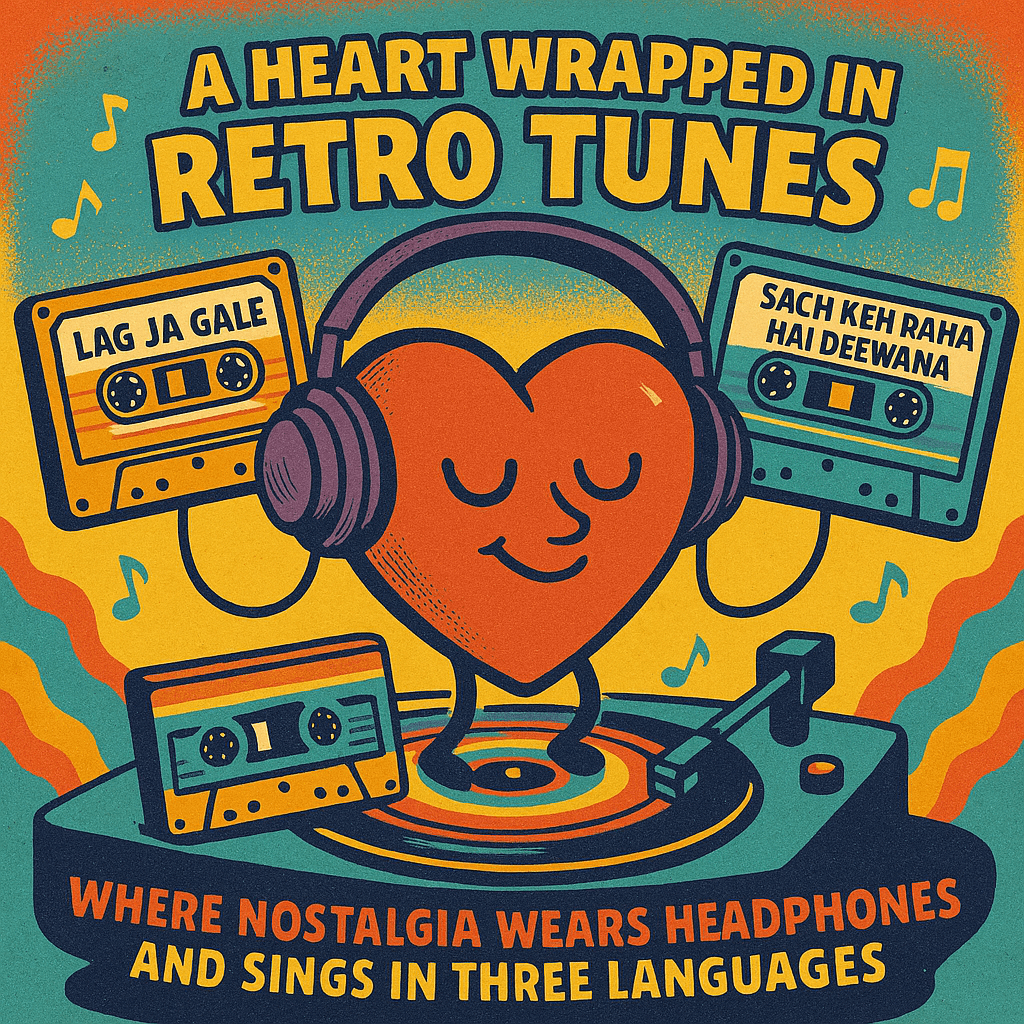 You see, I don’t need therapy when Lata sings “Lag Ja Gale” or Udit Narayan whispers “Pehla Nasha” in my ears. That’s my version of mindfulness—where nostalgia and lyrics swirl together like sugar in chai. I don’t jog to gym beats—I slow walk through the 90s in my head while humming “Tip Tip Barsa Paani.”