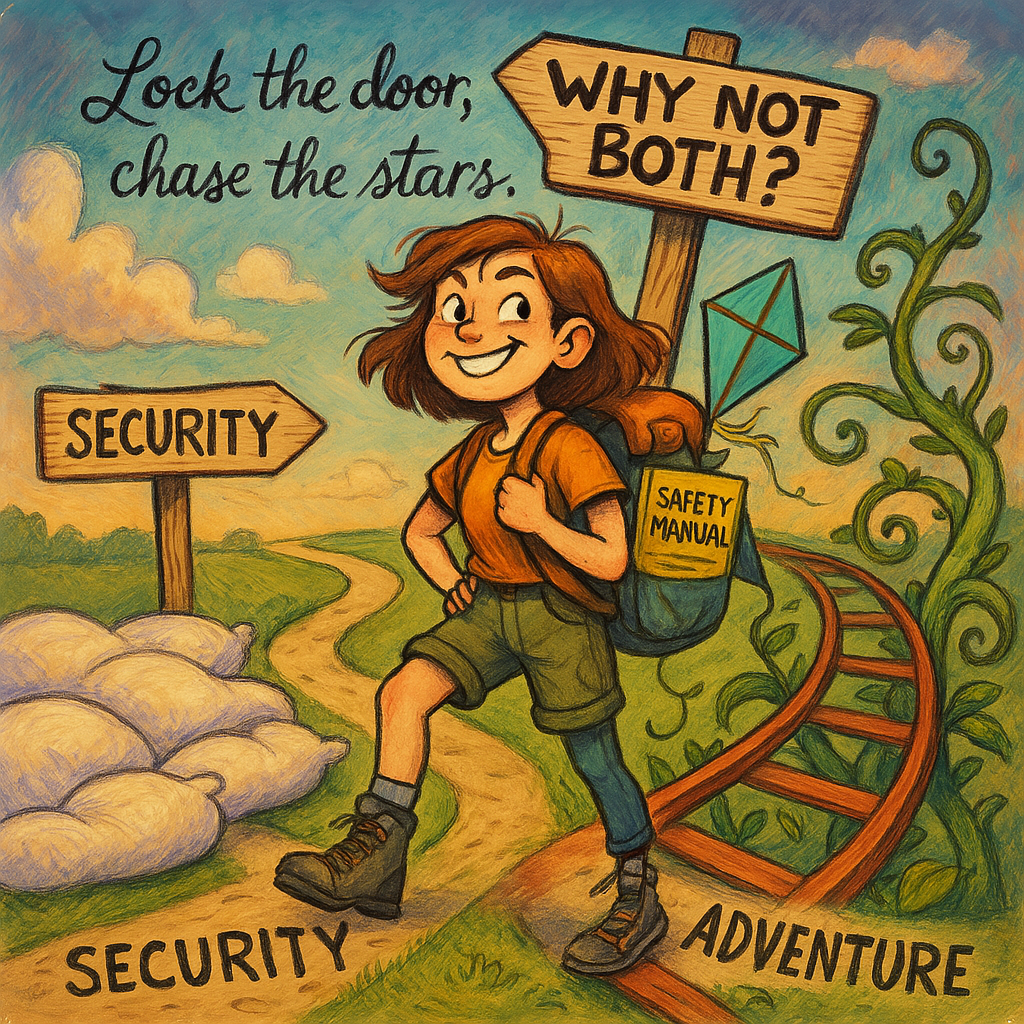 But let’s be honest. If life were only adventure, we’d be exhausted (and probably bankrupt). Constant thrill without a pause button can burn anyone out. That’s where security winks and says, “Told you so.” And if life were just security? We’d turn into over-cautious coconuts, afraid of our own shadows and permanently stuck in ‘low battery saver mode.’