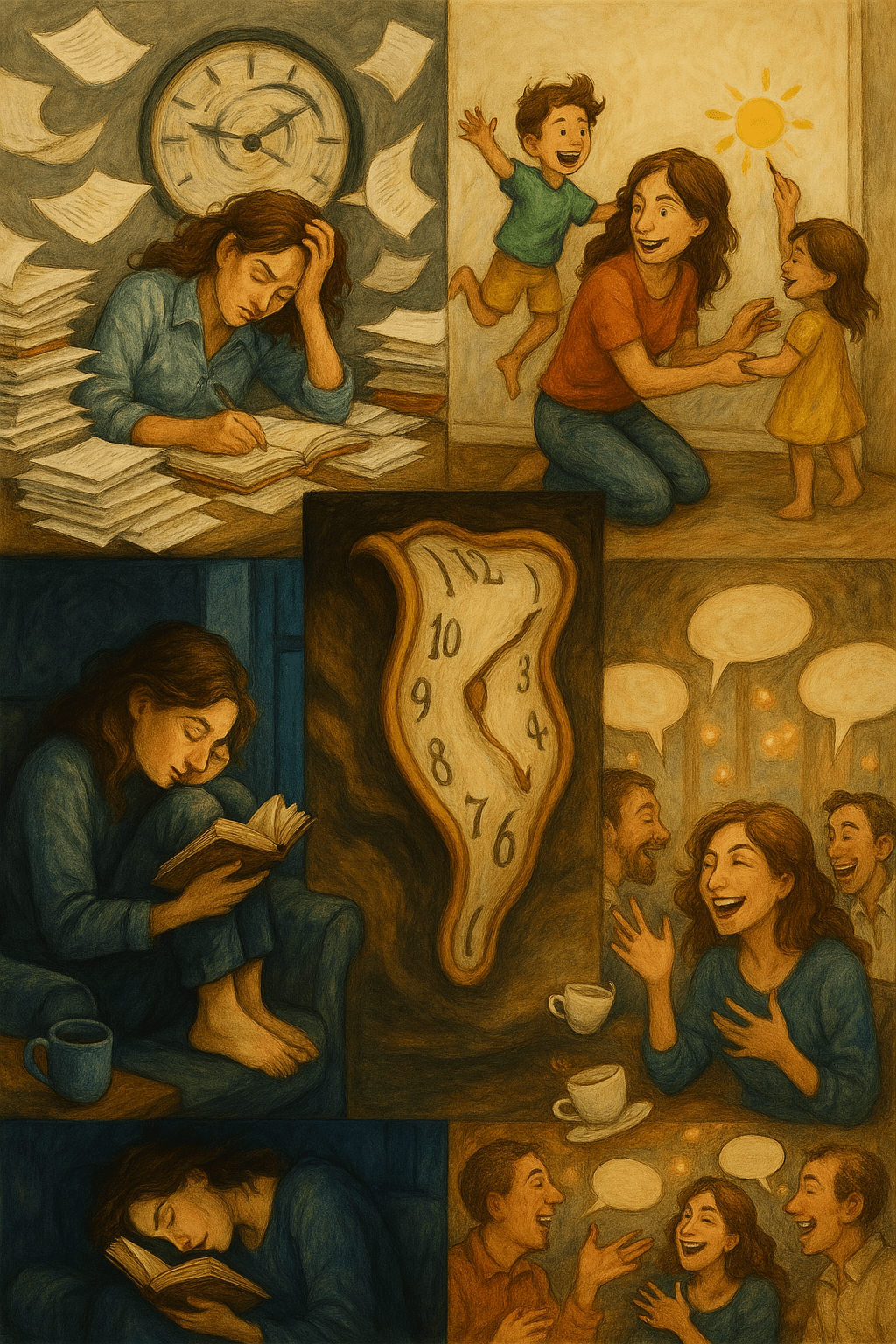 But the crown jewel of my time-slipping experiences? Being with my friends. We meet for “just an hour,” and suddenly it’s four, we’ve had coffee, laughter, gossip, shared parenting trauma, random movie quotes, and deep philosophical breakdowns like, “Do penguins have knees?” As the saying goes, “Time flies when you’re having rumoured stories and chai.”
