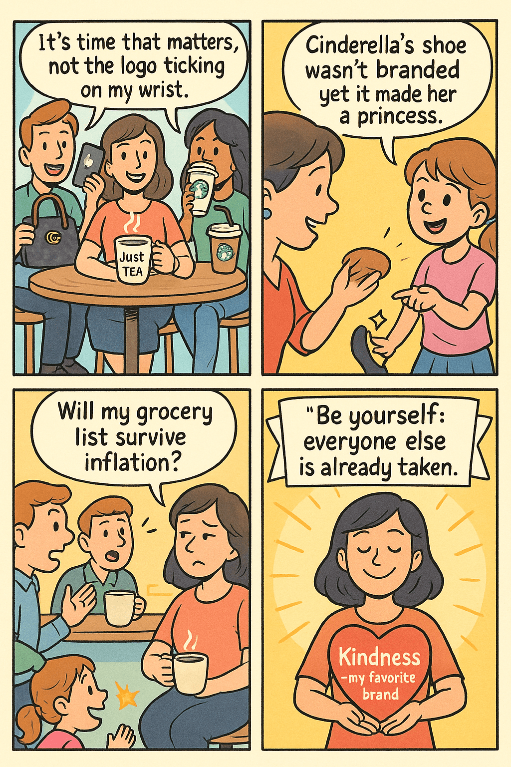 Another time, my daughter spotted her friend’s fancy shoes and demanded the same. I told her gently, “Sweetheart, Cinderella’s shoe wasn’t branded, yet it made her a princess.” She giggled, but it planted a seed.