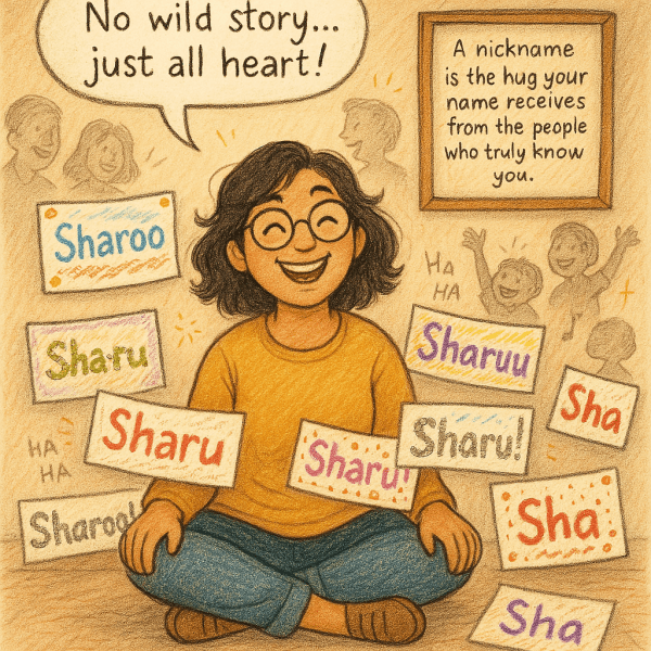 What's the story behind your nickname? Not all nicknames are born in dramatic stories or childhood disasters involving chocolate cake and the living room sofa. Some just… happen. Like mine—Sharu. No fireworks, no mystery, just a snug short form of my name. Simple? Yes. But boring? Not at all.You see, nicknames are like inside jokes... Continue Reading →