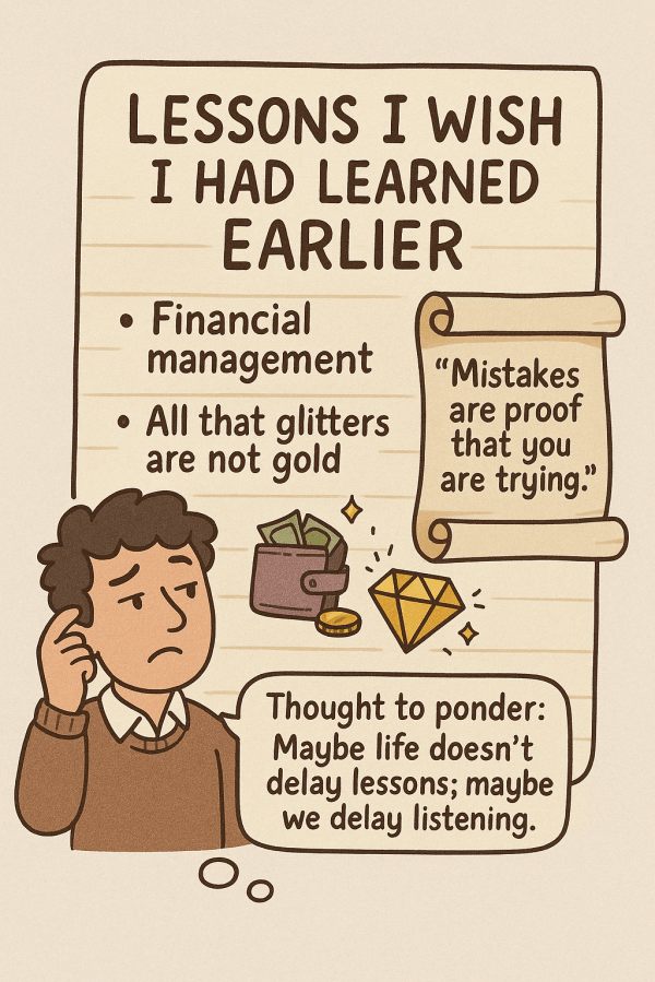 Share a lesson you wish you had learned earlier in life. They say, “Life is the best teacher, but the fees are very high.” If you ask me, I’ve paid quite a bit in both money and sanity to learn lessons that could have been taught earlier—preferably in school alongside algebra and the periodic table.One... Continue Reading →